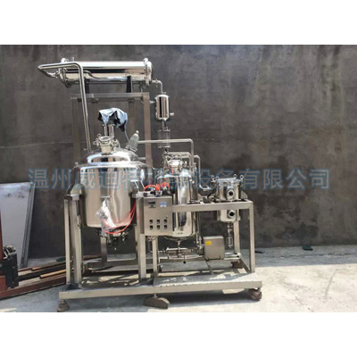 4、提取濃縮效率高,一次加料在密閉的設備內循環使用。原料內的有效成分可不斷提取出來,故此設備的用料量在相同提取量下節省原料30%以上。
