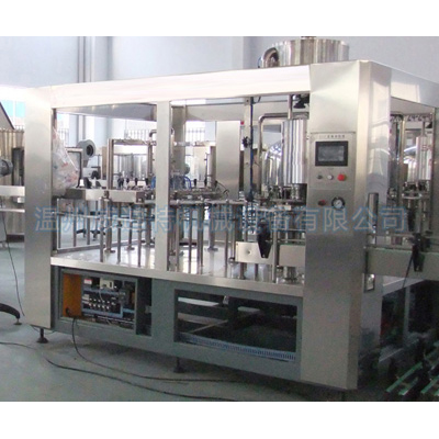 本機集沖瓶、灌裝、旋蓋三位一體,PLC自動控制。經過預處理的PET空瓶,通過無菌水沖洗后自動進入灌裝封口工序。