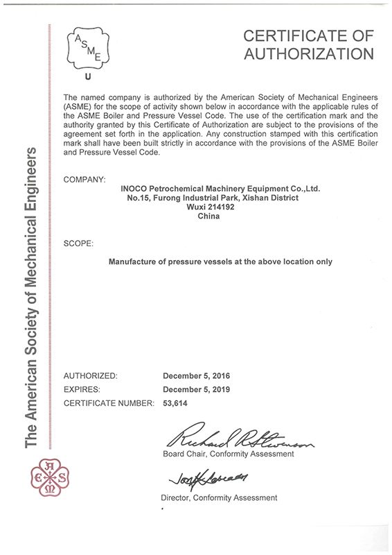 ASME-U崗證書 -