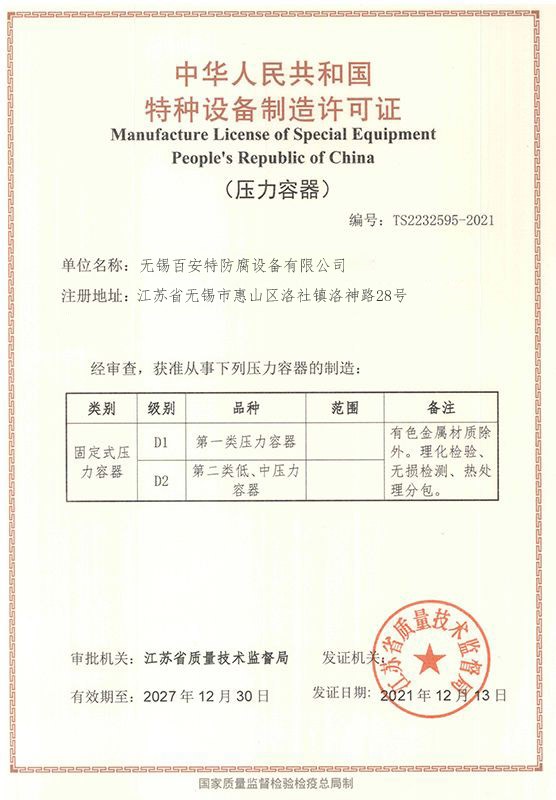 壓力容器制造許可證 -